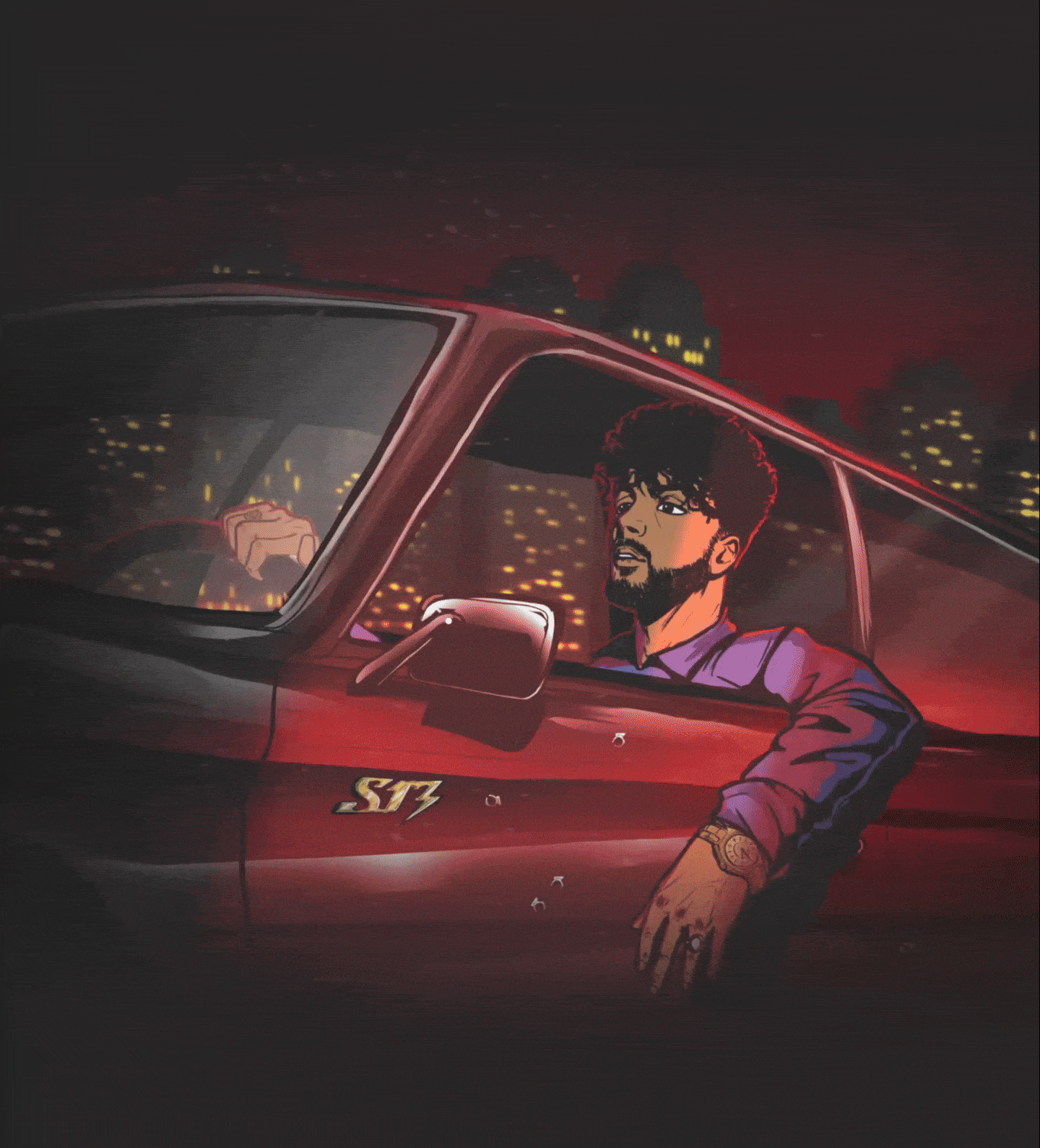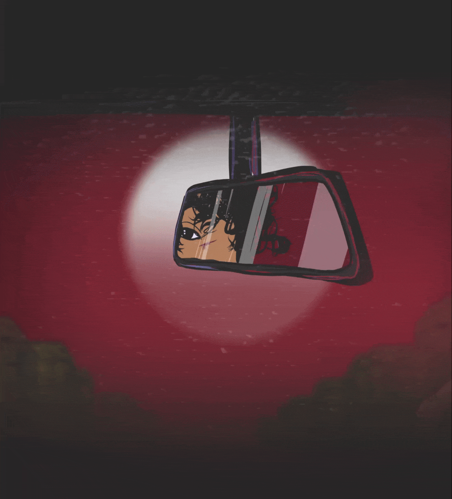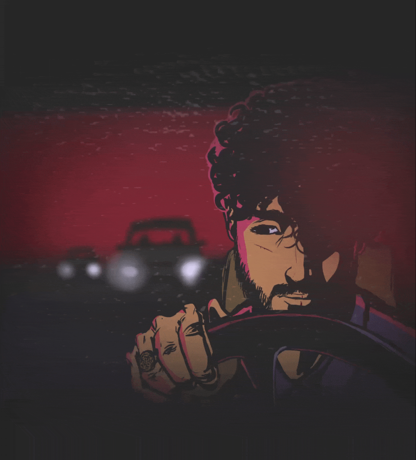 There goes our hero — driving away from something.