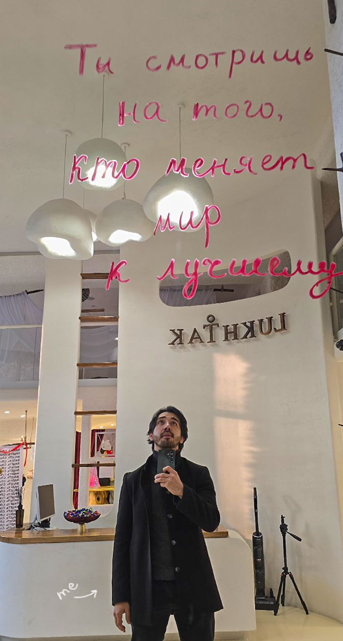 That’s me down below. Someone wrote on a mirror: “You’re looking at someone who’s changing the world for the better.” Hope we all see that person on a mirror.