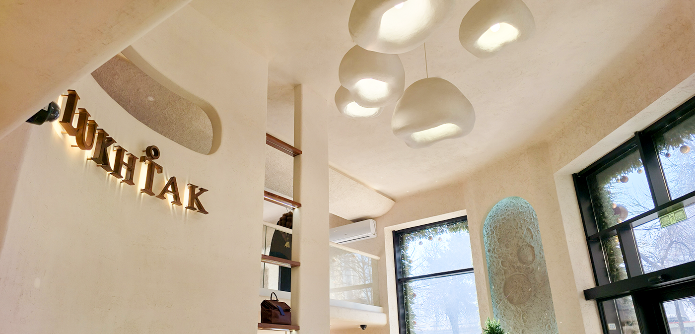 Here you can see how the logo works across exterior signage, interior spaces, and various objects. While I wasn’t responsible for the interior or exterior design, the client put a lot of effort into making everything feel just right. I really love how she incorporated the Lukhtak doll imagery in so many creative variations throughout the space.