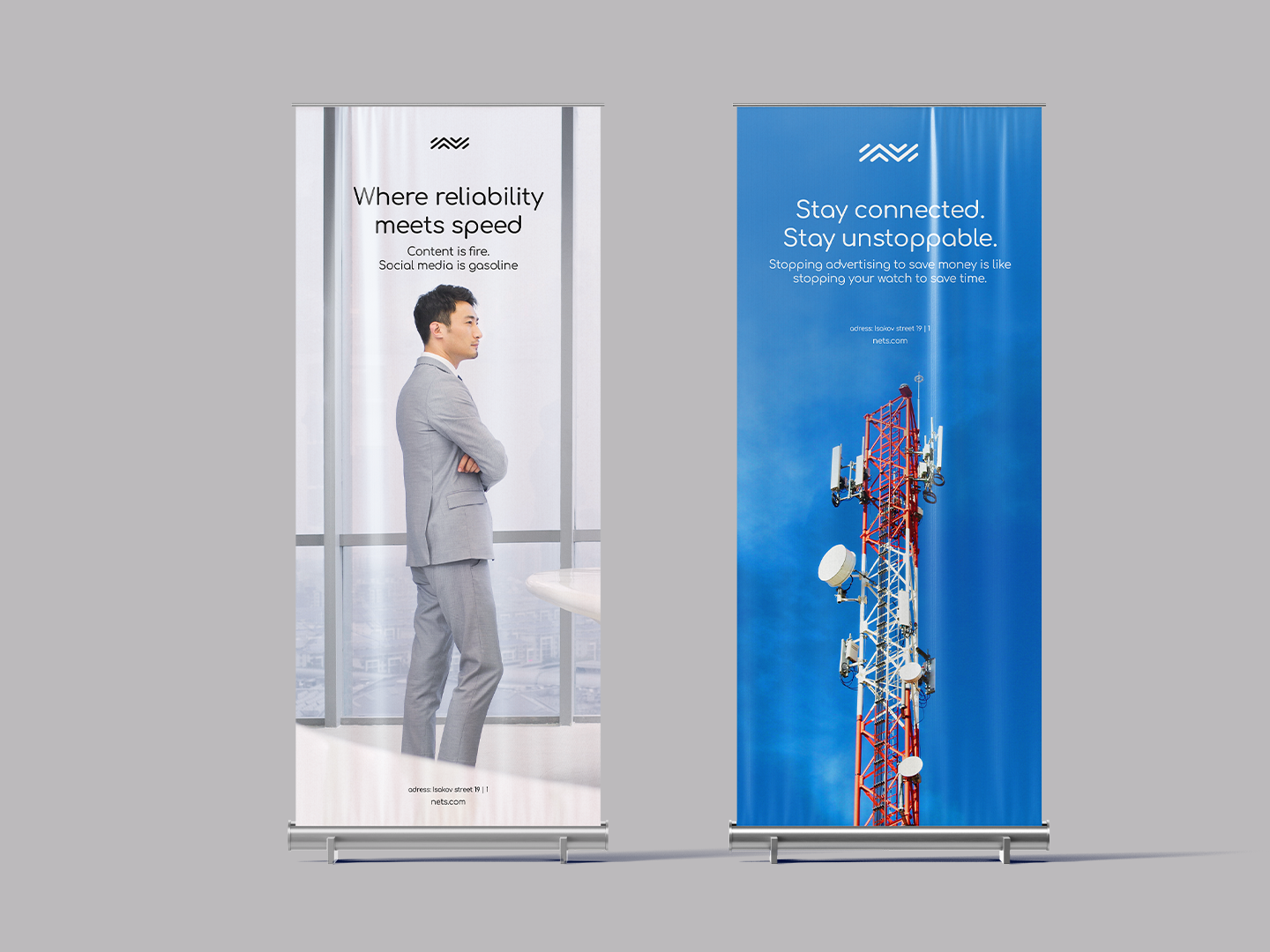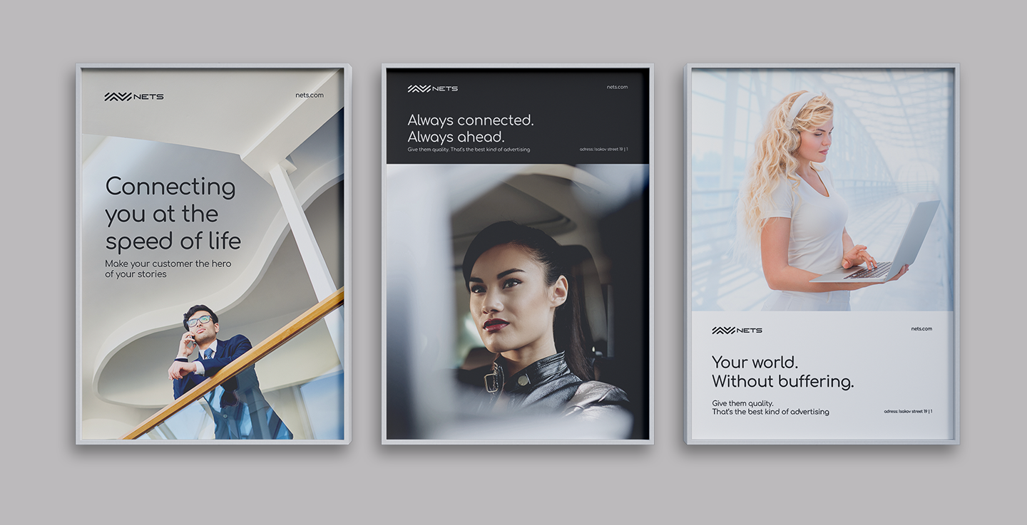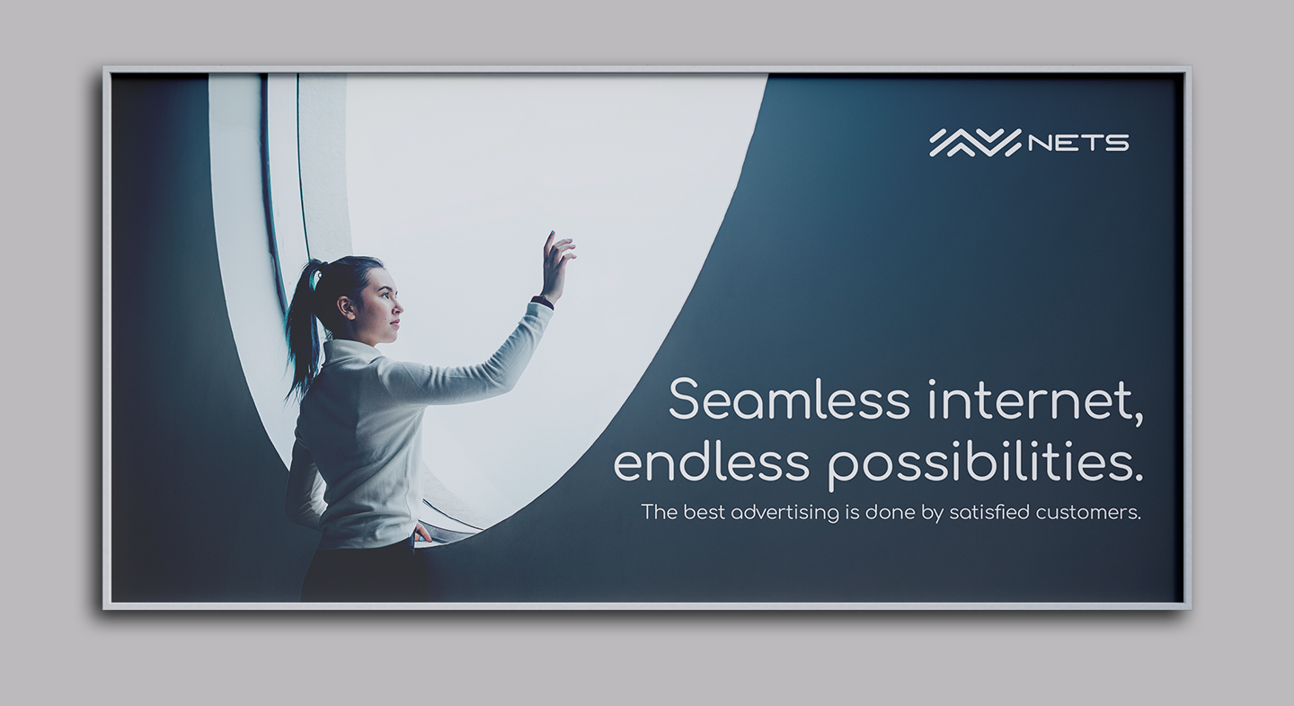 What tied everything together wasn’t one specific color, but the core brand elements — the logo, typography, and distinctive graphic shapes. This approach made the identity feel versatile, dynamic, and future-ready, while still being instantly recognizable as NETS.