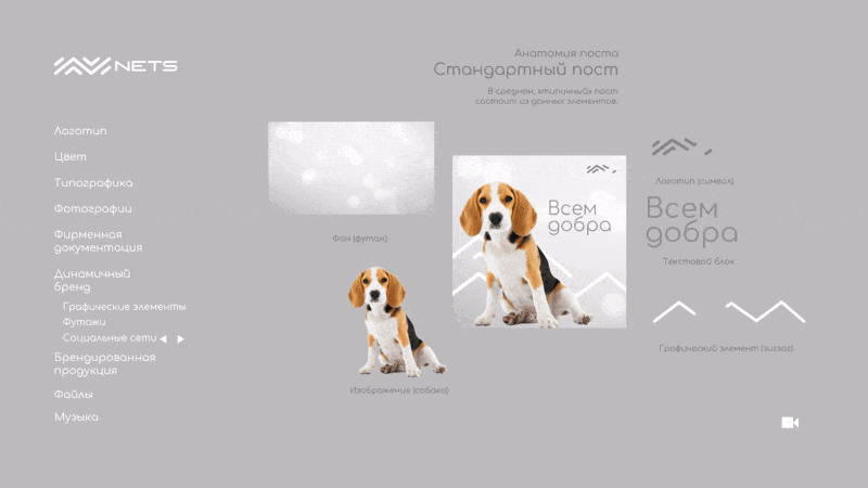 Another advantage of using a dynamic format was the ability to go beyond visuals. I could now demonstrate, with examples, how to choose music for brand videos. NETS had a specific vibe, and just like colors, typography, and motion, the soundscape needed to stay consistent.