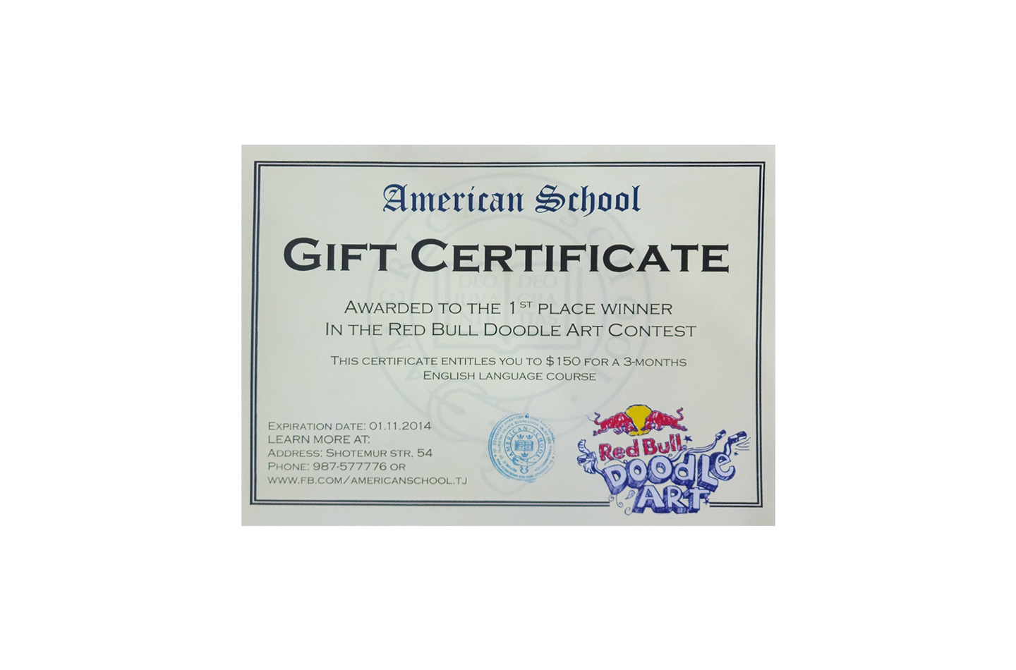 I took part in the Red Bull Doodle Art Competition back in 2014. Participants had to create a doodle on any theme they wanted. Lot's of countries participated in this. I participated in Tajikistan.